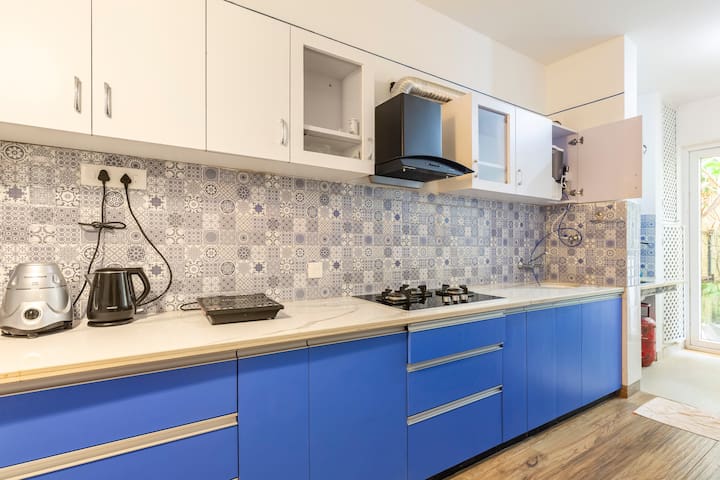 Upon entering our villas, you will immediately feel at home. The spacious and beautifully decorated living areas are perfect for unwinding after a day of exploring Goa’s famous beaches and attractions. The fully equipped kitchens are a chef’s dream, allowing you to cook up your own meals with fresh local ingredients.