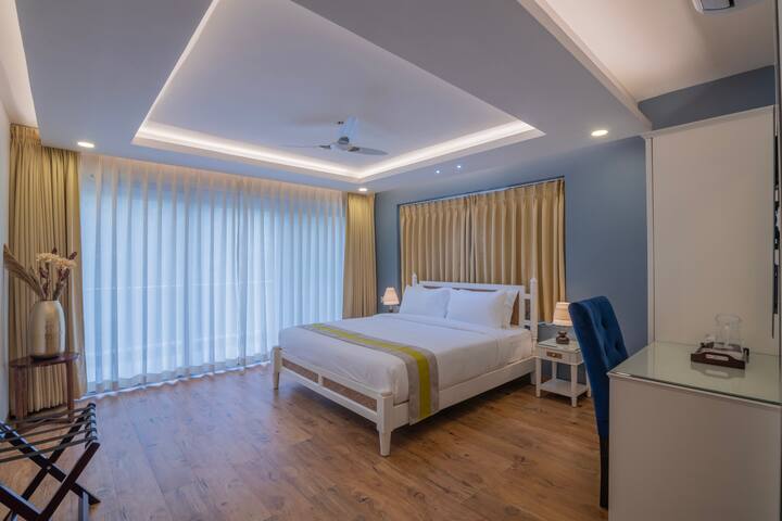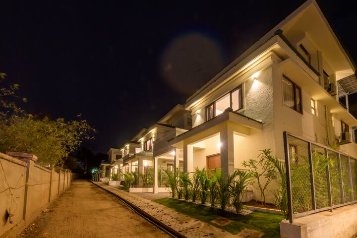 Escape to a 4-bedroom villa with a private swimming pool in the tranquil village of Siolim. Surrounded by lush greenery and only a short drive away from the bustling city of Goa, this Airbnb property offers the perfect blend of serenity and convenience.