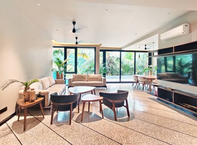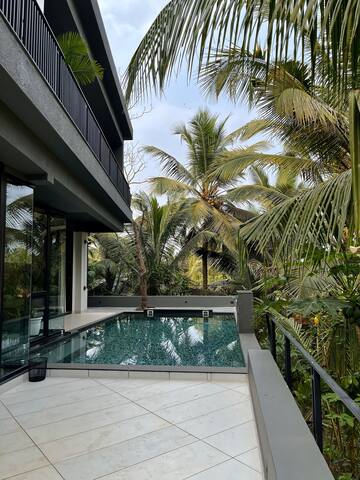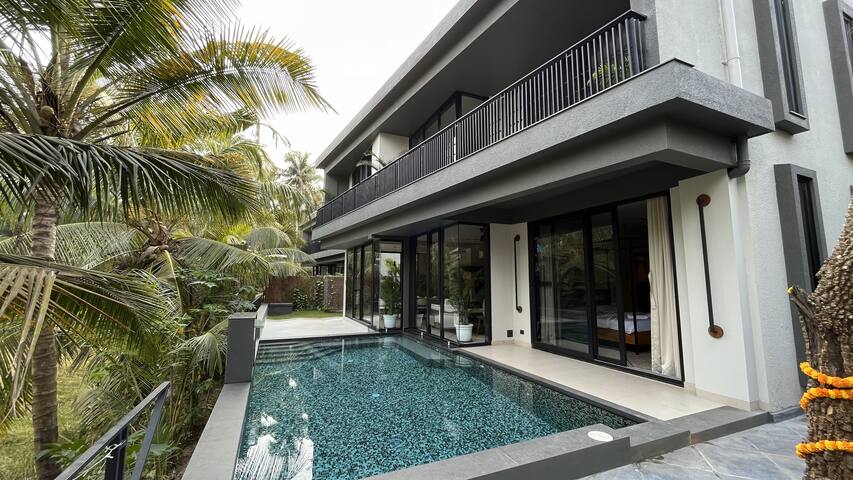 But the real highlight of this property is the outdoor space. Step outside to find a private pool, surrounded by lush greenery and plenty of lounge chairs for soaking up the sun. Enjoy a refreshing dip in the pool or unwind in the Jacuzzi after a day at the beach. And for those who love to entertain, there is a BBQ area and outdoor dining space ideal for hosting a dinner party under the stars.