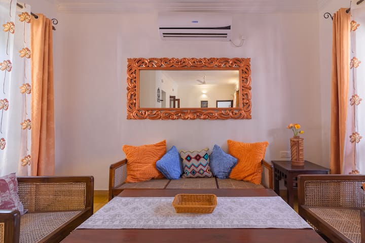 2. Beachfront Location: Step out of the villa and onto the golden sands of Anjuna beach. With the beach just a few steps away, you can soak up the sun, take a leisurely walk or indulge in water sports.