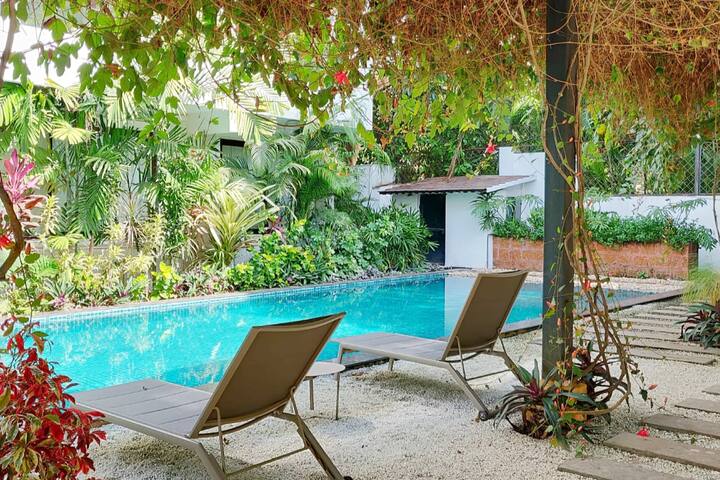 But the real highlight of this property is the private pool, perfect for a refreshing dip after a day of exploring the town. Imagine sipping on a cold drink while lounging by the pool, surrounded by lush tropical greenery and soaking up the warm Goan sun.
