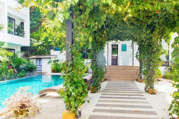 Welcome to your dream vacation at the Luxury Boutique Art Deco Pool Apartment in the vibrant town of Candolim! This stunning property offers the perfect mix of luxury, style, and convenience, making it the ideal choice for your next holiday destination.