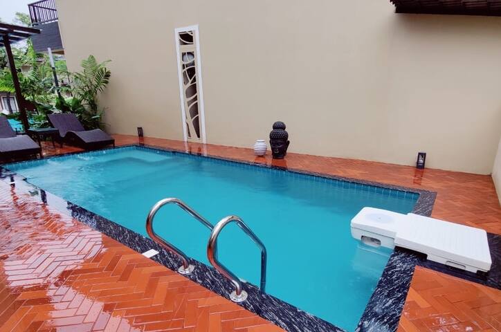 But the real highlight of this villa is its private pool. Take a dip in the cool waters or lounge on the sunbeds while sipping on your favorite drink. The pool area also features a BBQ grill, making it the ideal spot for a fun-filled evening with friends and family.