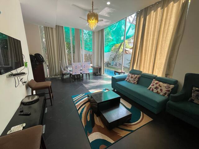 Escape to a bohemian paradise at the stunning 3BHK private pool villa in Baga, Goa. This exotic retreat is the perfect destination for those seeking a unique and memorable vacation experience. Located just a stone’s throw away from the famous Baga Beach, this Airbnb property offers the perfect combination of comfort, luxury, and convenience.