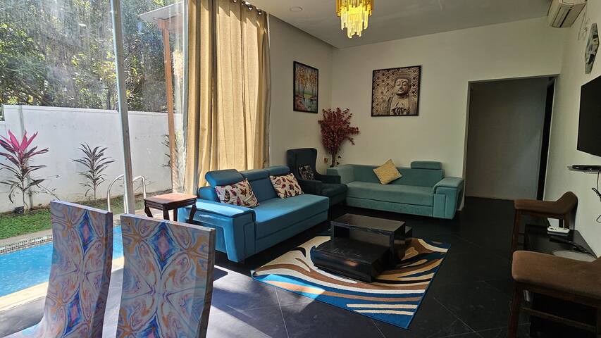 Speaking of the pool, it is undoubtedly one of the top highlights of this property. Surrounded by lush greenery and comfortable loungers, the private pool is the perfect spot to unwind and soak up the Goan sun. Take a refreshing dip or simply relax with a cold drink in hand, the choice is yours.
