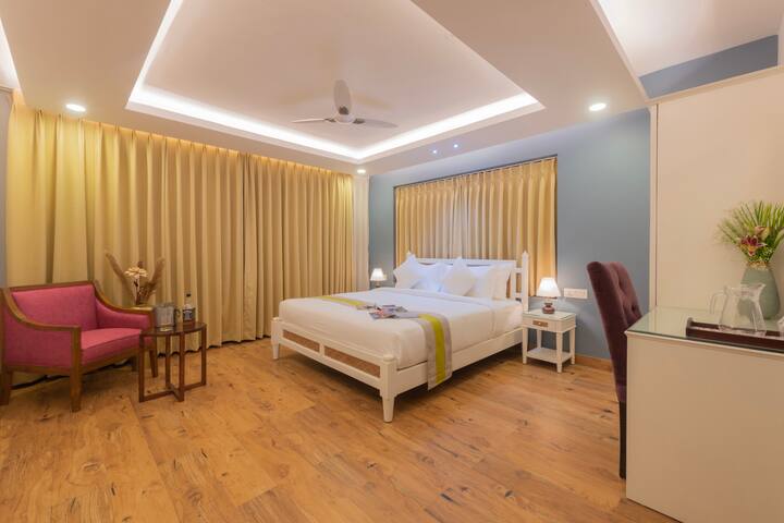 But the highlights of this property don’t stop there. Located in the charming village of Siolim, you’ll be surrounded by lush greenery and a peaceful atmosphere. Yet, you’re only a short drive away from the popular beaches of North Goa, where you can indulge in water sports, delicious seafood, and vibrant nightlife.