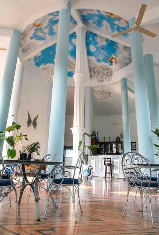 But the perks don’t stop there. Our family suite also includes a fully equipped kitchen, perfect for preparing meals and snacks for the whole family. Plus, with Vagator Beach just a short walk away, you’ll have easy access to some of the best dining options in the area.