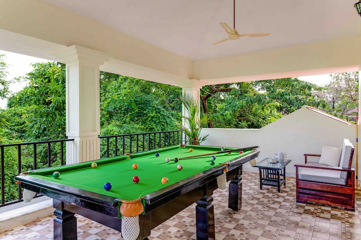 One of the highlights of this property is the private pool, where you can take a refreshing dip while enjoying the stunning views of the surrounding landscape. You can also relax and soak up the sun on the comfortable loungers by the poolside. And for those looking for some friendly competition, the villa also has a pool table where you can challenge your friends or family to a game.