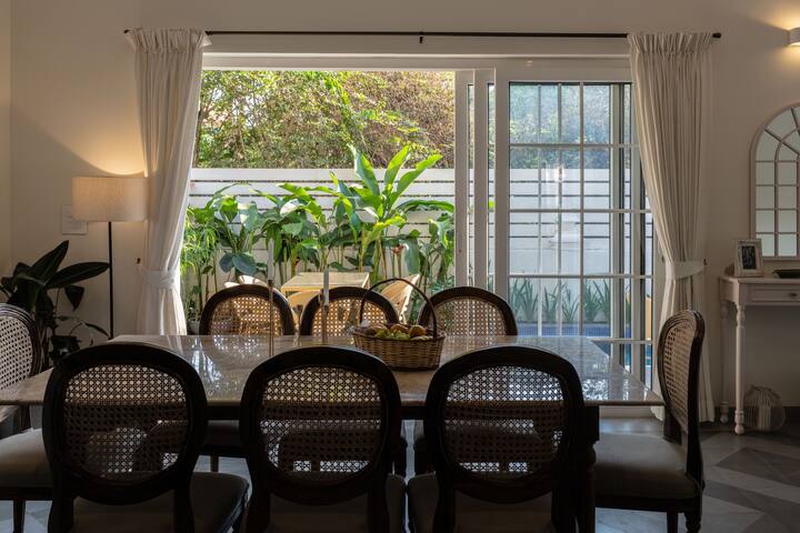 Located in the picturesque town of Arpora, this villa offers the perfect blend of tranquility and convenience. You’ll be just a short drive away from popular beaches like Anjuna and Baga, as well as some of the best restaurants, bars, and clubs in Goa.