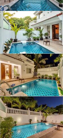 The three bedrooms in this villa are each uniquely designed and offer the utmost comfort and privacy. The master bedroom features a comfortable king-size bed and an en-suite bathroom with a luxurious bathtub. The other two bedrooms also have their own en-suite bathrooms and are equipped with cozy queen-size beds.