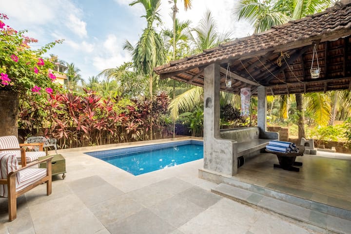 1. Private Pool: Indulge in ultimate privacy as you take a dip in your very own pool overlooking the lush greenery of Mandrem. Perfect for a refreshing swim or a poolside party with friends and family.