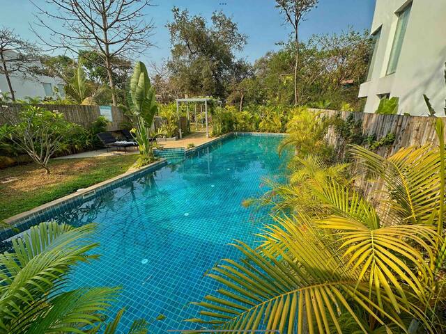 Located in the charming village of Assagao, this villa offers the perfect blend of tranquility and convenience. The popular beaches of Calangute, Anjuna, and Baga are just a short drive away, and you can easily explore the vibrant nightlife and bustling markets of Goa. If you prefer a quieter day, you can also visit the nearby beaches of Morjim and Ashwem, known for their serene and less crowded atmosphere.