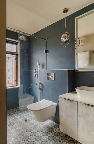 As soon as you step into our villa, you will be greeted by the harmonious blend of modern and traditional elements. The open-concept living space boasts a chic and contemporary design, with pops of vibrant colors and intricate Goan artwork adorning the walls. The fully equipped kitchen is a chef’s delight, complete with high-end appliances and ample counter space to whip up a delicious meal.