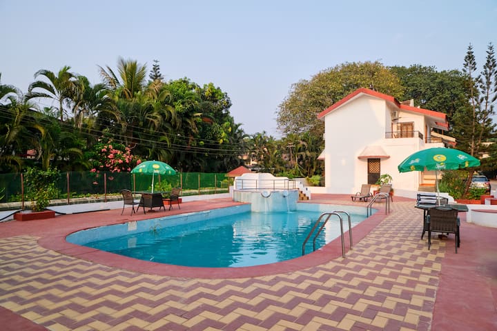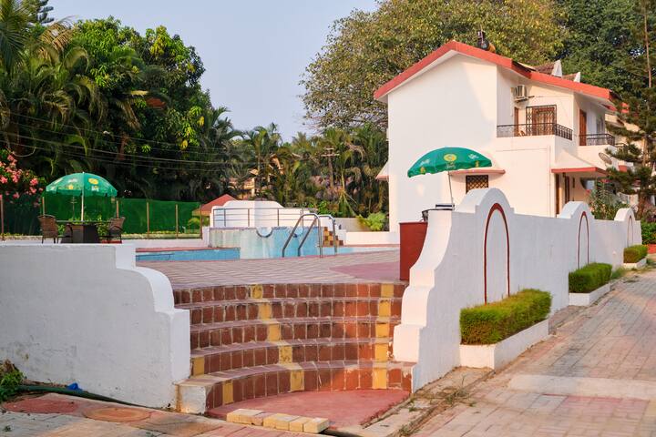 But the real highlight of this property is its outdoor space. Step outside and be greeted by a large, sparkling pool surrounded by lush greenery. Spend your days lounging by the pool, sipping on cocktails and soaking up the Goan sun. And as the sun sets, gather around the poolside barbeque and indulge in a delicious meal with your loved ones.