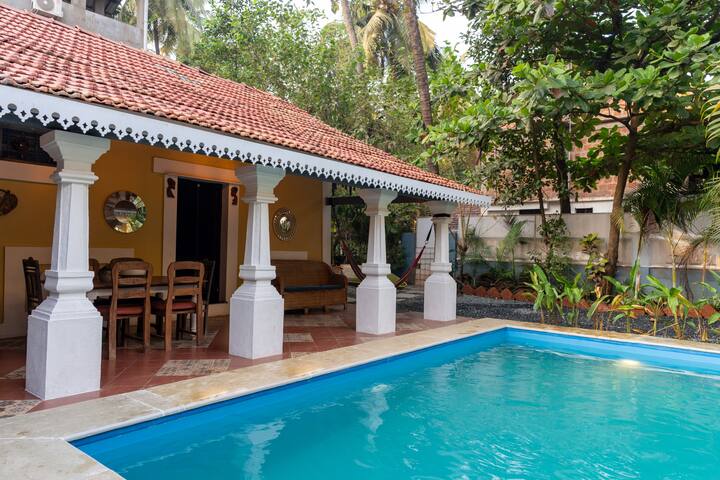 Looking for the perfect getaway to escape the hustle and bustle of city life? Look no further than this stunning 3BHK Portuguese villa with a private pool, located in the charming town of Morjim.