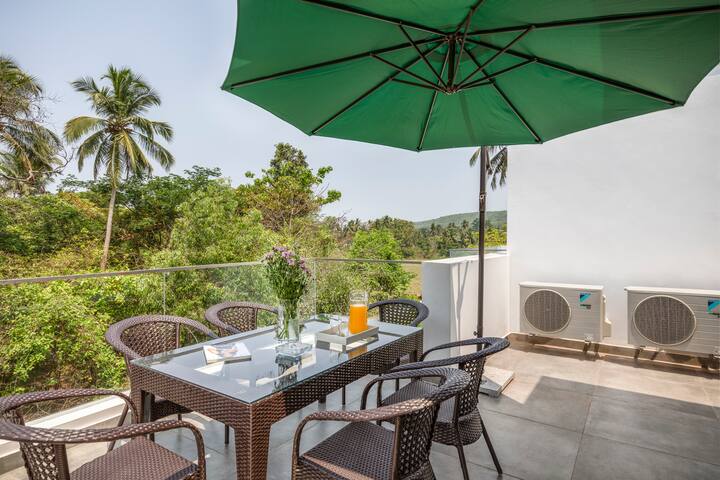 The two bedrooms are equally delightful, featuring comfortable beds and ample storage space. The master bedroom even boasts an en-suite bathroom for added convenience. Wake up to the sound of birds chirping and let the gentle Goan breeze lull you to sleep at night.