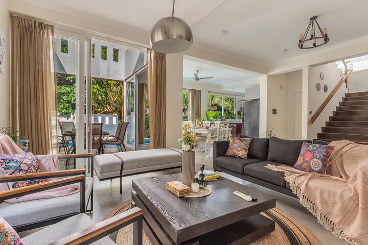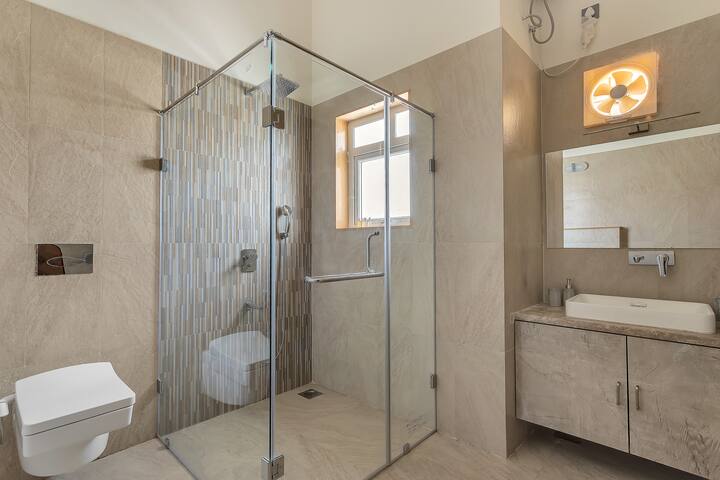The villa features 3 beautifully designed bedrooms, each equipped with comfortable beds and luxurious linens to ensure a restful sleep. The master bedroom boasts a private balcony, perfect for sipping your morning coffee while taking in the serene surroundings.