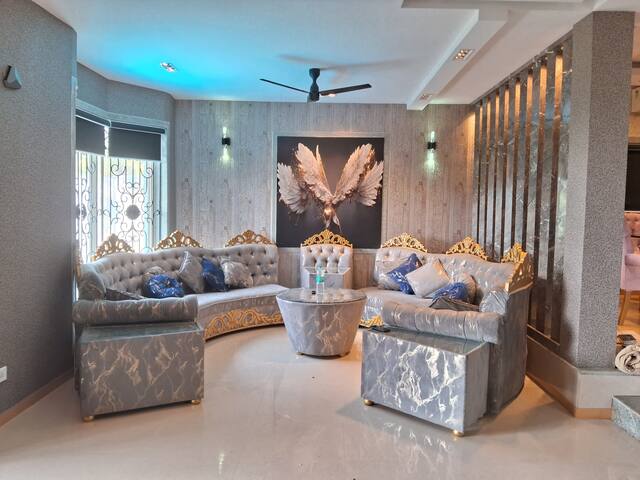 As you enter the bungalow, you will be greeted by a spacious and elegantly designed living area. The interior is tastefully decorated with modern furniture and touches of gold accents, creating a sense of opulence and sophistication. The fully equipped kitchen is a dream for any cooking enthusiast, with top-of-the-line appliances and ample counter space to prepare delicious meals.