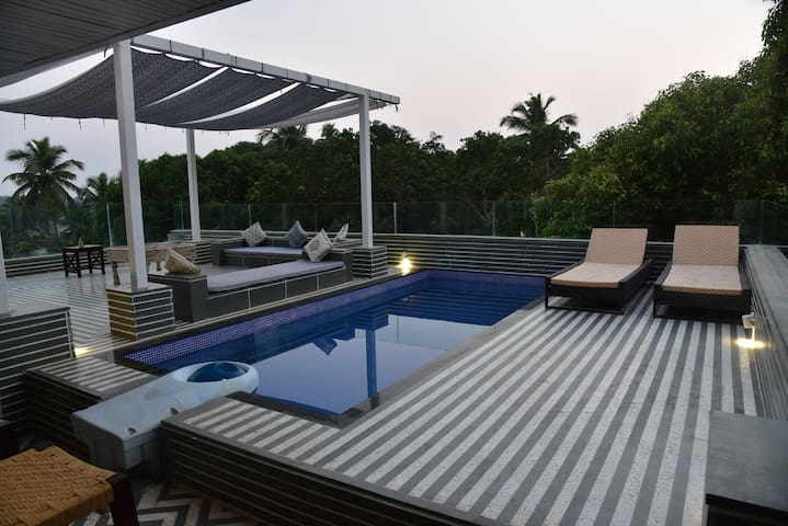 Nestled on the banks of the serene river, our penthouse offers a tranquil and private oasis for you to unwind and rejuvenate. The highlight of this property is the private pool, where you can soak up the warm Goan sun while enjoying a refreshing dip. The poolside area is also equipped with comfortable loungers, making it the ideal spot for sipping on your favorite drink or catching up on your reading.