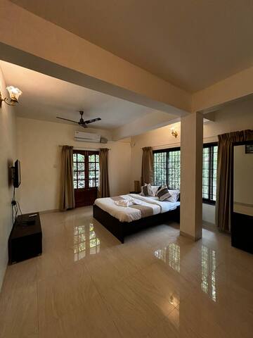 But the true highlight of Papa John Villa is its outdoor space. Step out onto the expansive terrace and take in the stunning panoramic views of the mountains and lush greenery. The private pool is perfect for a refreshing dip, while the outdoor dining area is the ideal spot to enjoy a delicious meal while basking in the warm sun.