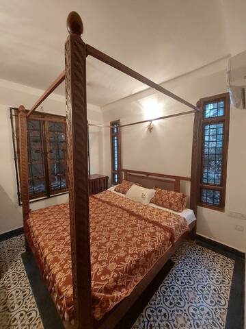 Step into our charming suite and be greeted by warm, rustic décor and plenty of natural light. The spacious room features a plush king-sized bed, perfect for a comfortable night’s sleep after a day of exploring the beautiful surroundings. The en-suite bathroom boasts a luxurious rain shower, providing the ultimate relaxation experience.