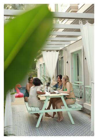 Now, let’s talk about the highlights of this stay. For starters, the property features a private pool and outdoor entertaining area, perfect for soaking up the sun or hosting a BBQ with friends and family. And for those who love to stay active, there’s a fitness center and tennis courts on-site.