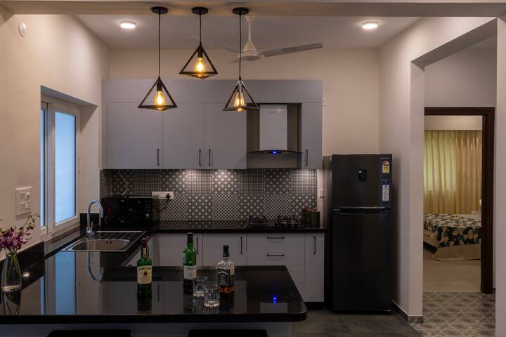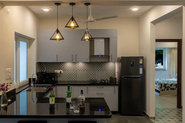 For those who love to cook, the fully equipped kitchen is a dream come true. Whip up some delicious Goan delicacies and enjoy them in the dining area, which opens up to a beautiful garden and patio, perfect for al fresco dining.