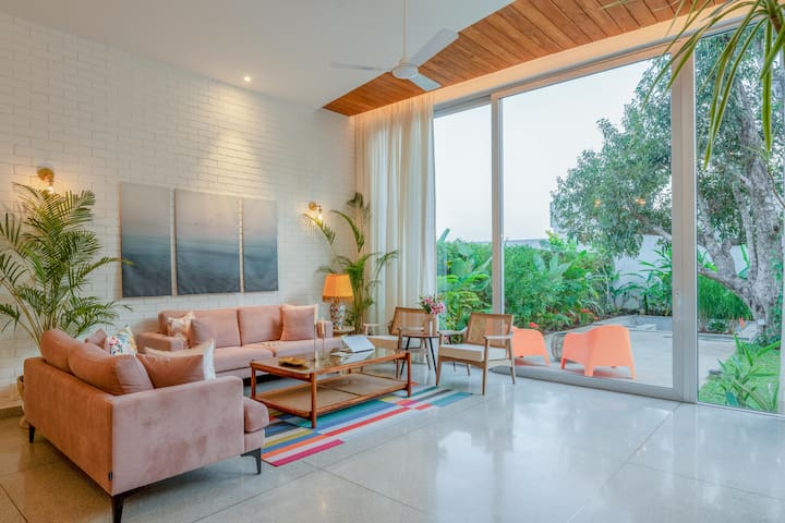 The first thing that will catch your eye upon arrival is the villa’s beautiful architecture and lush green surroundings. Nestled in the quaint village of Assagao, Staymaster Villa Asana offers a tranquil setting away from the hustle and bustle of Goa’s popular tourist spots. Yet, it is just a short drive away from all the action, making it the ideal location for a relaxing and convenient stay.