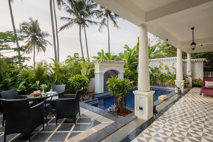 Welcome to your perfect Goan getaway – Staymaster Vivenda De Anjuna! This stunning property boasts a prime location, just steps away from the beach and with a refreshing pool to cool off in after a day of exploring.