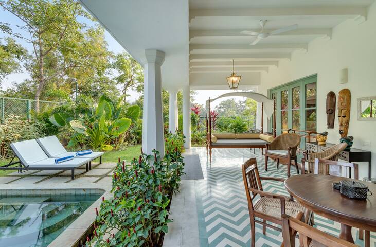 The first thing you’ll notice upon entering Villa Eden is the stunning private pool. Surrounded by lush greenery and comfortable sun loungers, this is the perfect spot to soak up the Goan sunshine and take a refreshing dip. Whether you’re looking to cool off after a day of exploring or simply want to unwind and enjoy the peaceful surroundings, the pool is sure to be a highlight of your stay.