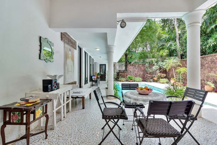 Escape to a charming vintage hideaway nestled in the heart of the countryside. This 4BHK pet-friendly villa boasts a private pool, perfect for a relaxing and rejuvenating vacation.